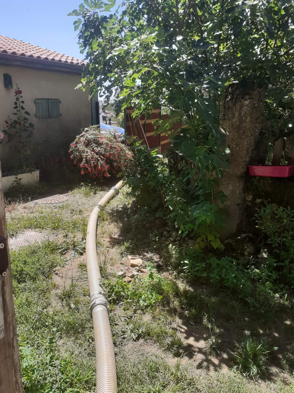Livraison de granulés de bois - Chaudière Morvan - Tuyaux de soufflage à travers le jardin-Le houga(32460) - Gers (32)