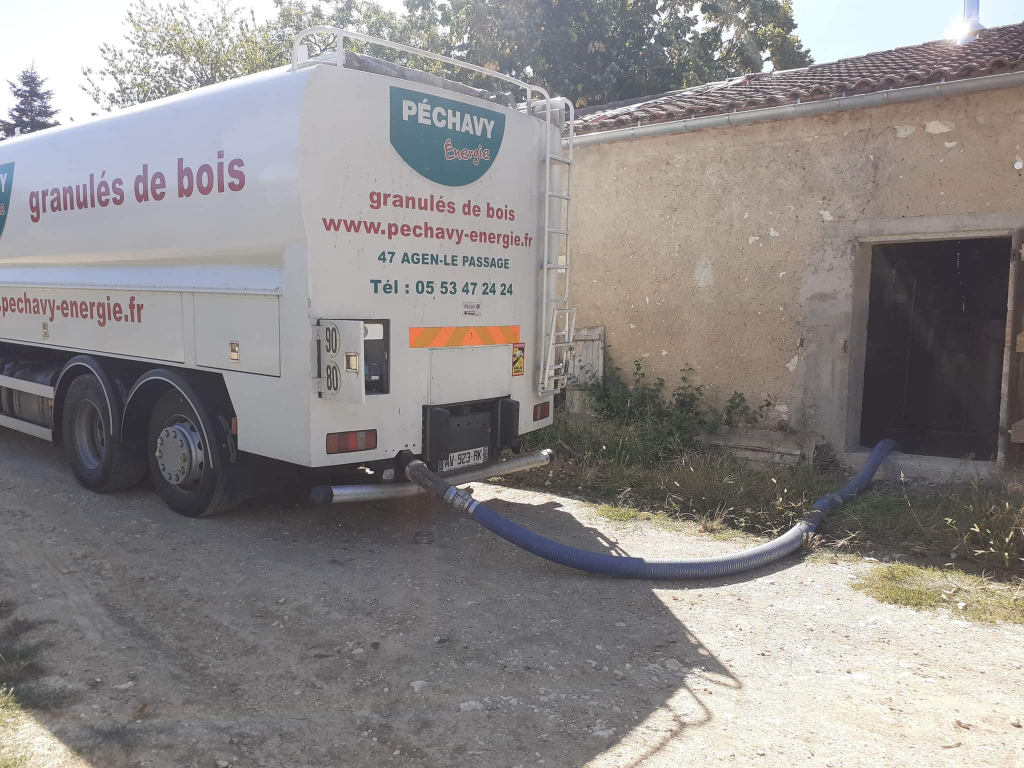 Notre chauffeur a dû reculer le camion souffleur au plus près du lieu de stockage du silo afin de permettre une livraison plus rapide mais surtout pour éviter d'endommager les granulés lors du déchargement.