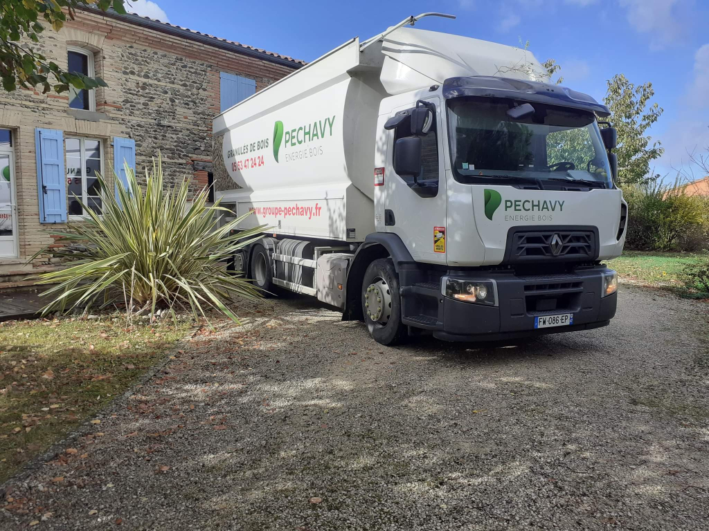 Livraison de granulés de bois Pechavy pour cette récente installation d'une chaudière Ökofen à Dienpentale, dans le Tarn-et-Garonne (82).