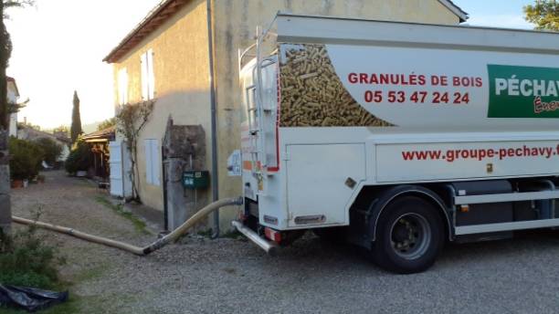 Livraison de granulés de bois pour chaudière Okofen avant la mise en service - Réalisation Biomasse par un installateur RGE Qualibois-Saint-pierre-de-buzet(47160) - Lot et Garonne (47)