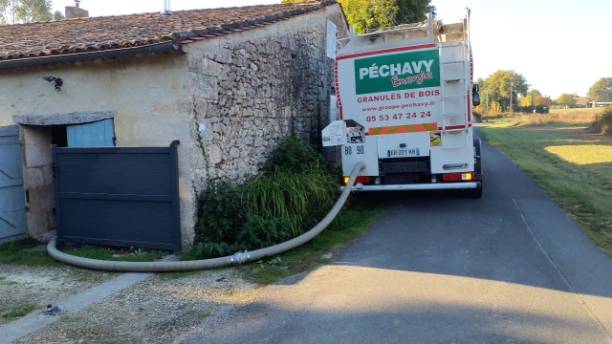 Livraison de granulé de bois en Gironde (33) pour une maison d'habitation - Chaudière Okofen et silo textile - Camion souffleur Péchavy-Blesignac(33670) - Gironde (33)