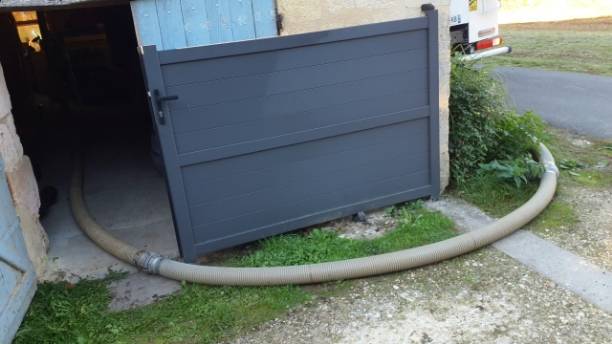 Notre chauffeur-livreur est alors intervenu avec un camion souffleur afin d’effectuer le remplissage du silo. Pour cela, il a stationné sur la chaussée et déroulé environ 18 mètres de flexible afin d’assurer le déchargement du combustible dans les meilleures conditions.