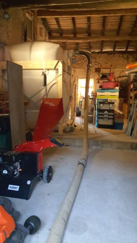 Cette installation comprend un silo de stockage textile, permettant l’alimentation automatique de la chaudière en granulés de bois par un système d’aspiration.