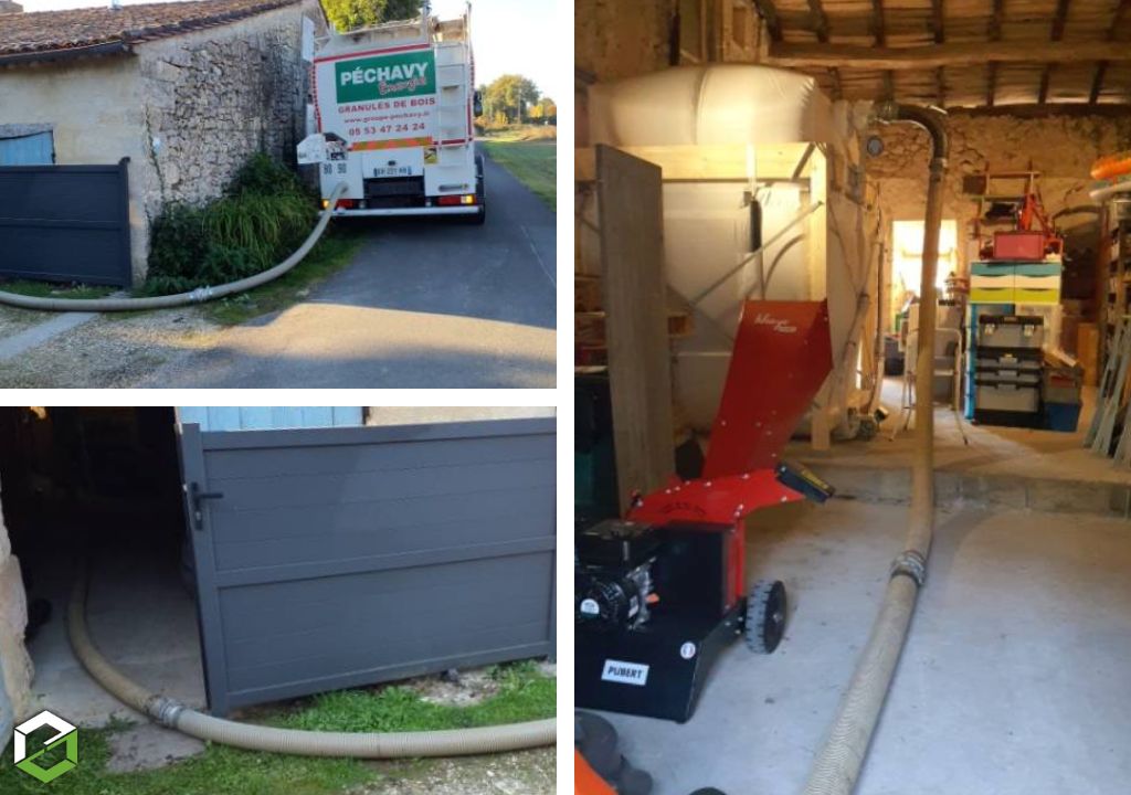Une fois la pose terminée, le client a fait appel à nos services pour l’approvisionnement en granulés de bois.
