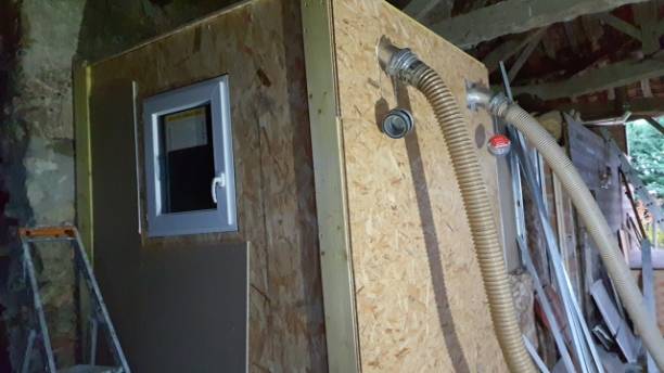 Le client a choisi un silo bâti, conçu sur mesure pour s’intégrer parfaitement à la configuration de la pièce. Ce type de silo, contrairement au modèle textile, offre une grande flexibilité d’aménagement en utilisant par exemple un mur existant.