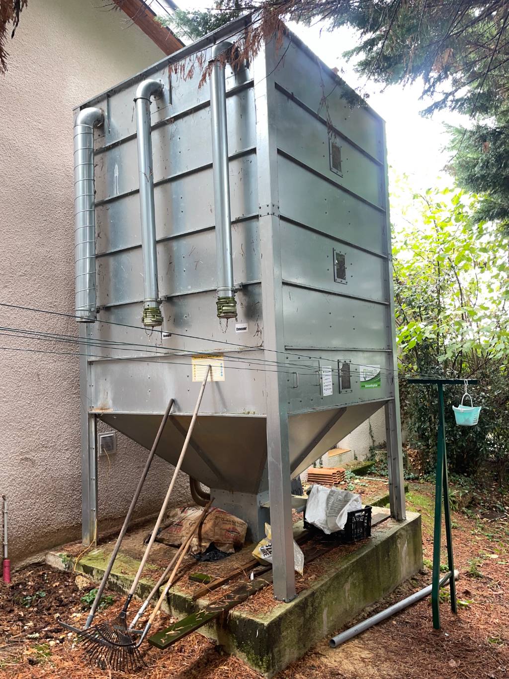 Ici, était encore présent plus d'une tonne de granulés e bois dans le silo de stockage. Nous avons donc conseillé aux clients d'utiliser un maximum le pellet restant pour en minimiser le cout d'intervention.
