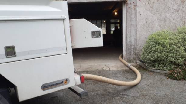 Pour cette intervention, nos équipes ont procédé au raccordement de trois flexibles afin de relier le camion souffleur Péchavy au silo de stockage du client, permettant ainsi un acheminement optimal des granulés sans perte de qualité.