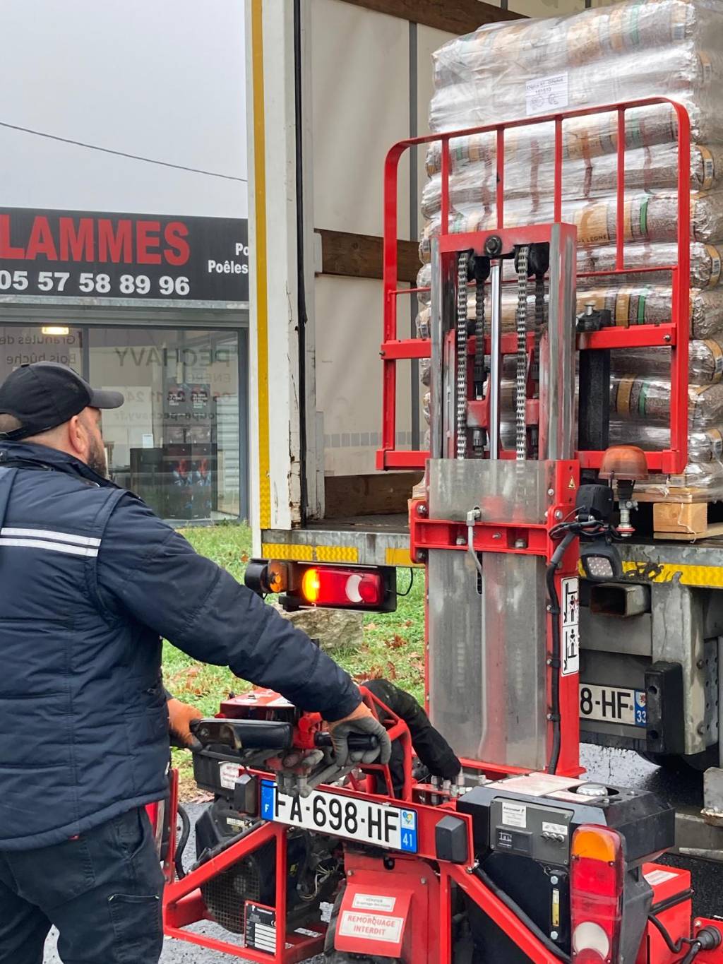 Nos équipes livrent votre palette via camion porteur équipé d’un chariot embarqué et d’un transpalette électrique. Ce matériel de pointe permet de déposer la palette exactement à l’endroit souhaité, tout en assurant une manutention propre et sécurisée.