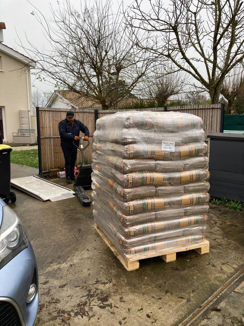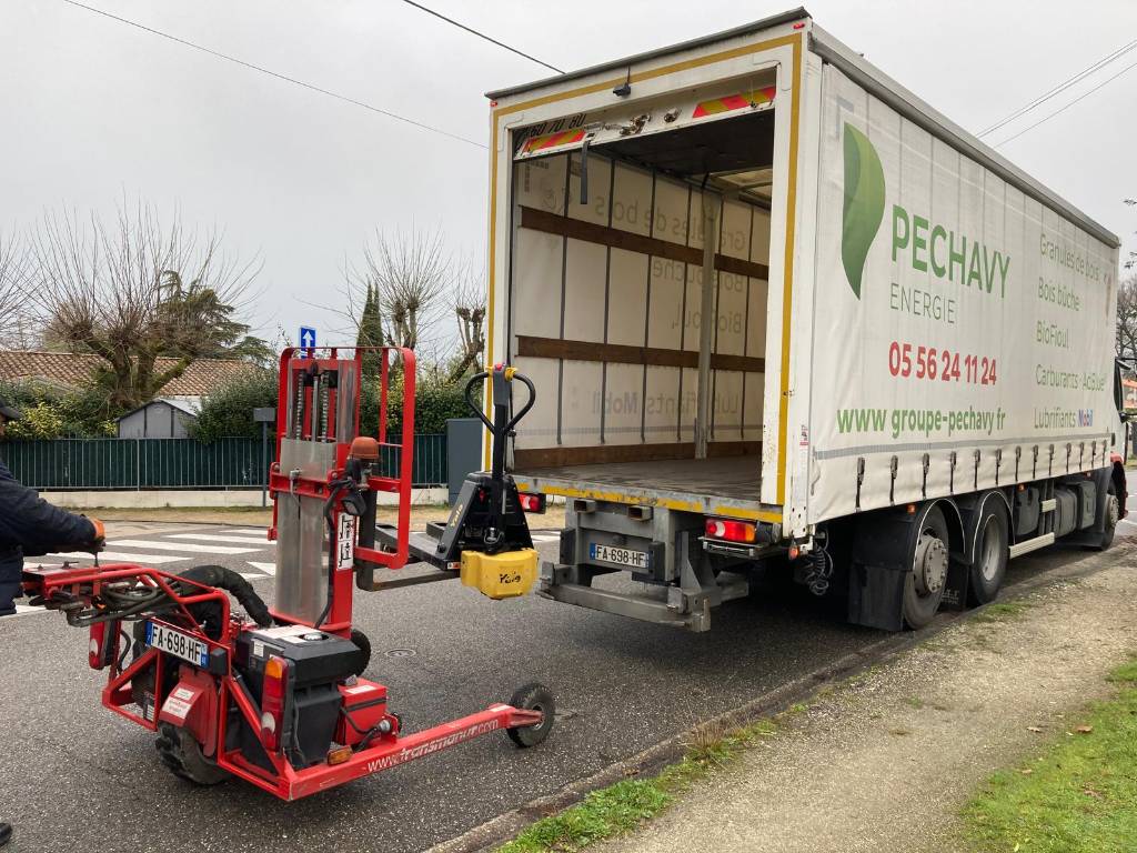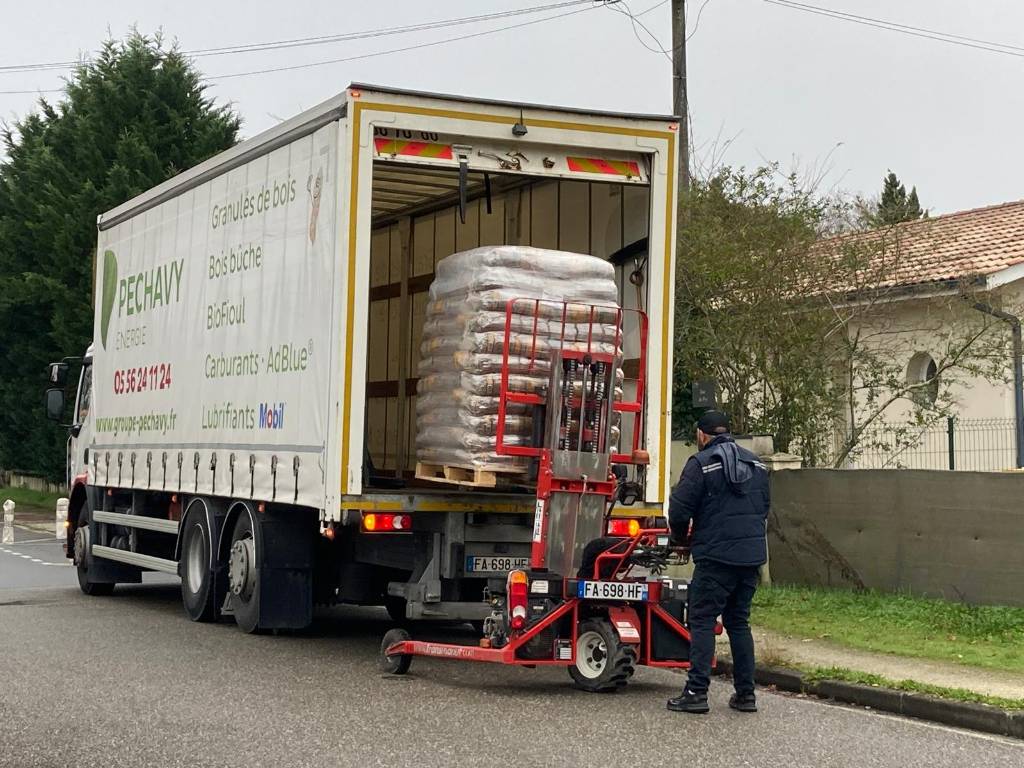 La force de Péchavy Énergie Bois réside dans notre savoir-faire logistique, pensé pour un service client optimal. Pour cette livraison en Gironde, la palette a été déposée directement dans l’espace de stockage voulu par le client, grâce au chariot embarqué et au transpalette électrique. Cette manutention précise, est un service offert au client pour leur éviter toute manipulation lourde ou fastidieuse. Avec Péchavy Énergie Bois, tout est installé à l’endroit souhaité pour un usage quotidien pratique.