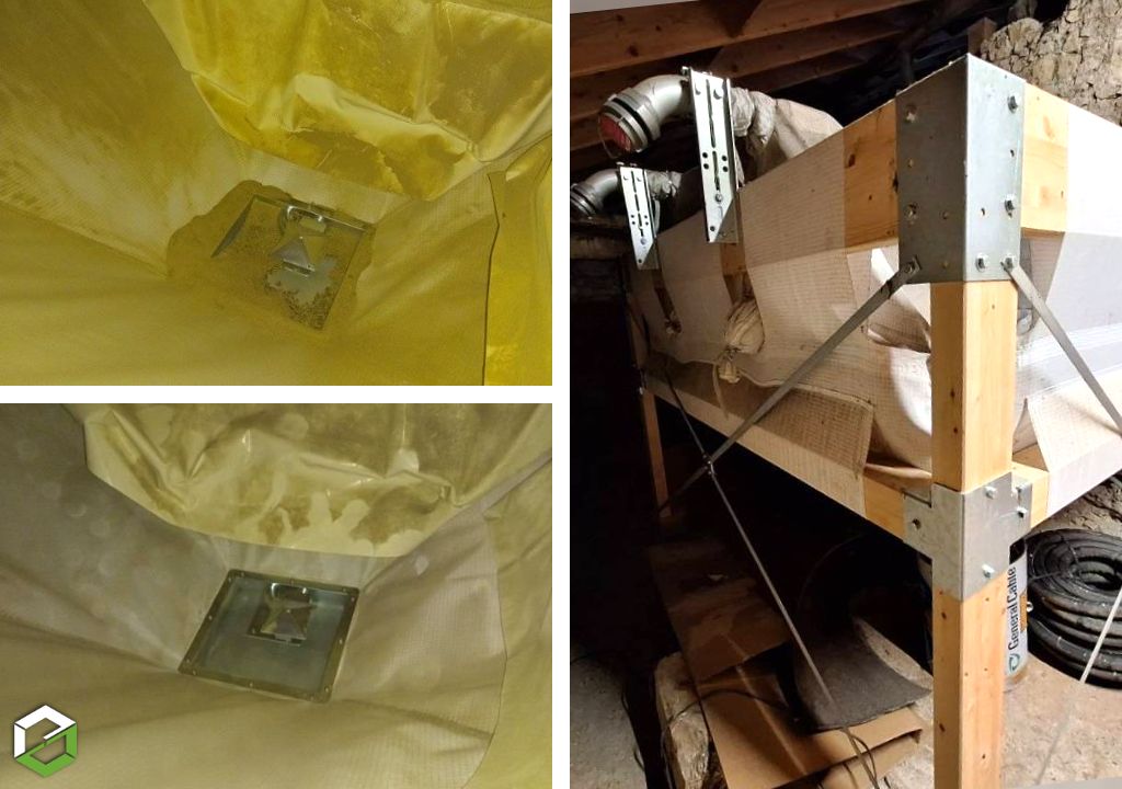 Le nettoyage du silo de stockage a été réalisé à l’aide d’un aspirateur industriel, spécialement conçu pour aspirer les résidus de bois présents au fond du silo, sur les parois, au plafond, sur le tapis d’impact (s’il y en a) et les éléments internes (vis sans fin – buses d’aspiration).