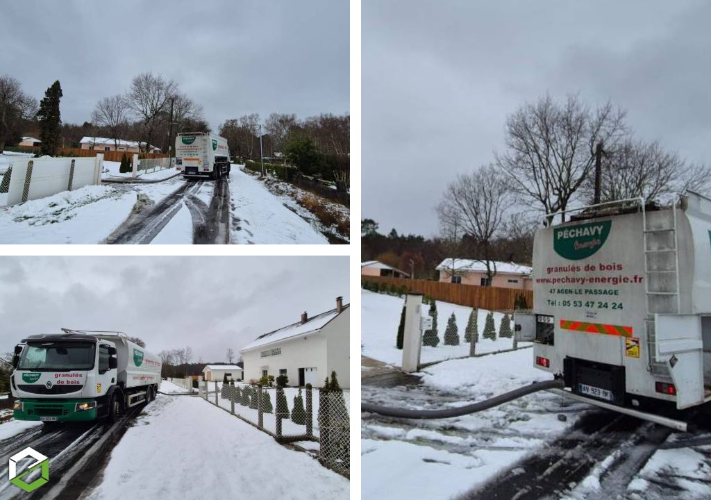 La livraison de pellets en vrac nécessite un matériel spécifique, un accès sécurisé et surtout une grande maîtrise du terrain. En hiver, la neige et le verglas représentent plusieurs risques :