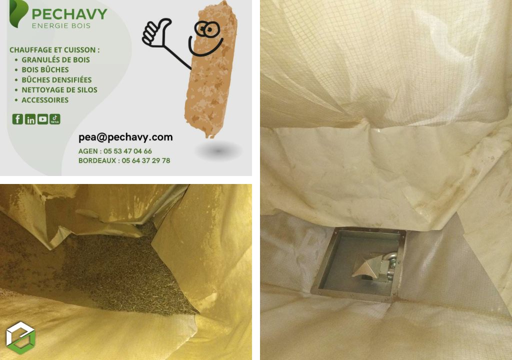 Récemment, notre équipe Péchavy Énergie Bois a réalisé un nettoyage préventif sur un silo textile d’une capacité de 4,5 tonnes. Résultat : près de 300 kg de poussières et résidus de pellets ont été récupérés.
