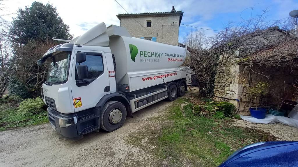 À Blaymont, dans le Lot-et-Garonne (47), Péchavy Énergie Bois accompagne particuliers et professionnels avec la livraison de granulés de bois en vrac certifiés DINPlus et ENPlus.