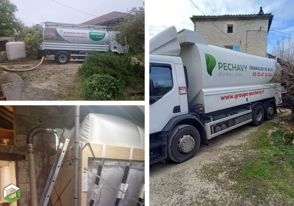 Parmi nos clients du Lot-et-Garonne, un client anglais nous fait confiance depuis 2024 pour l’approvisionnement de son chauffage biomasse. Sa consommation annuelle est d’environ 6 tonnes de granulés de bois en vrac. Le combustible est livré par notre société Péchavy Énergie Bois directement à son domicile à Blaymont.