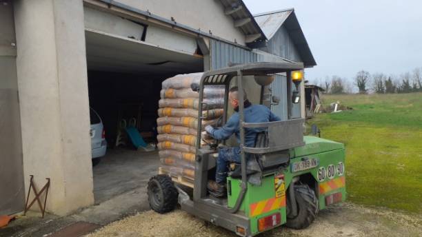 Chez Péchavy Energie Bois, nous savons que la logistique est essentielle. C’est pourquoi nous réalisons la livraison de granulés de bois en sacs via camion-porteur équipé d’un chariot embarqué et d’un transpalette électrique.