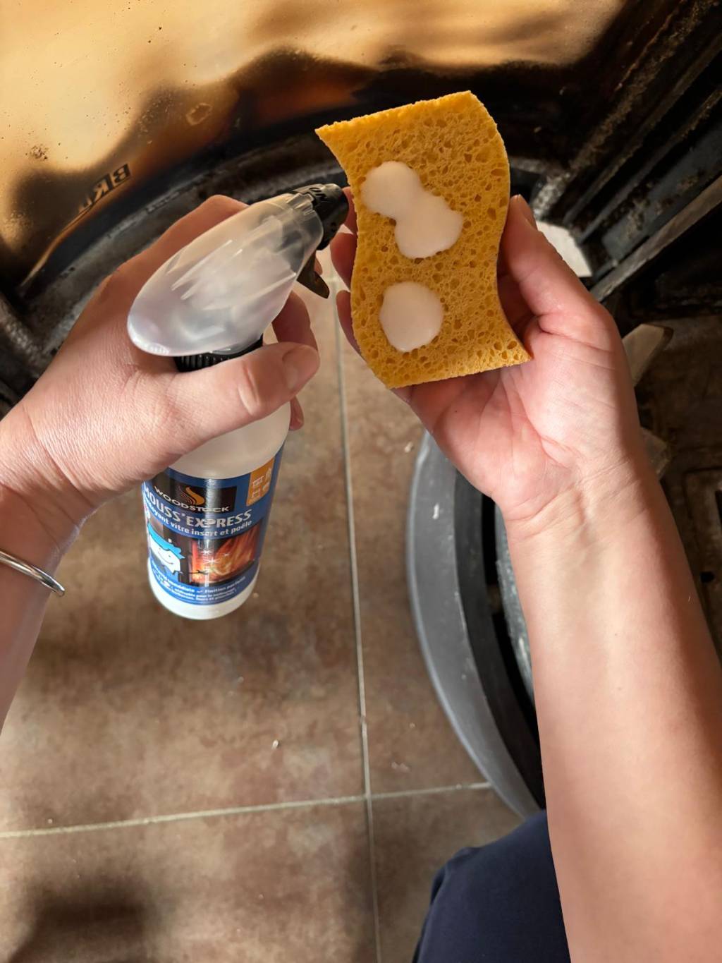La Mouss’Express Péchavy pour nettoyer la vitre de son poêle à bois