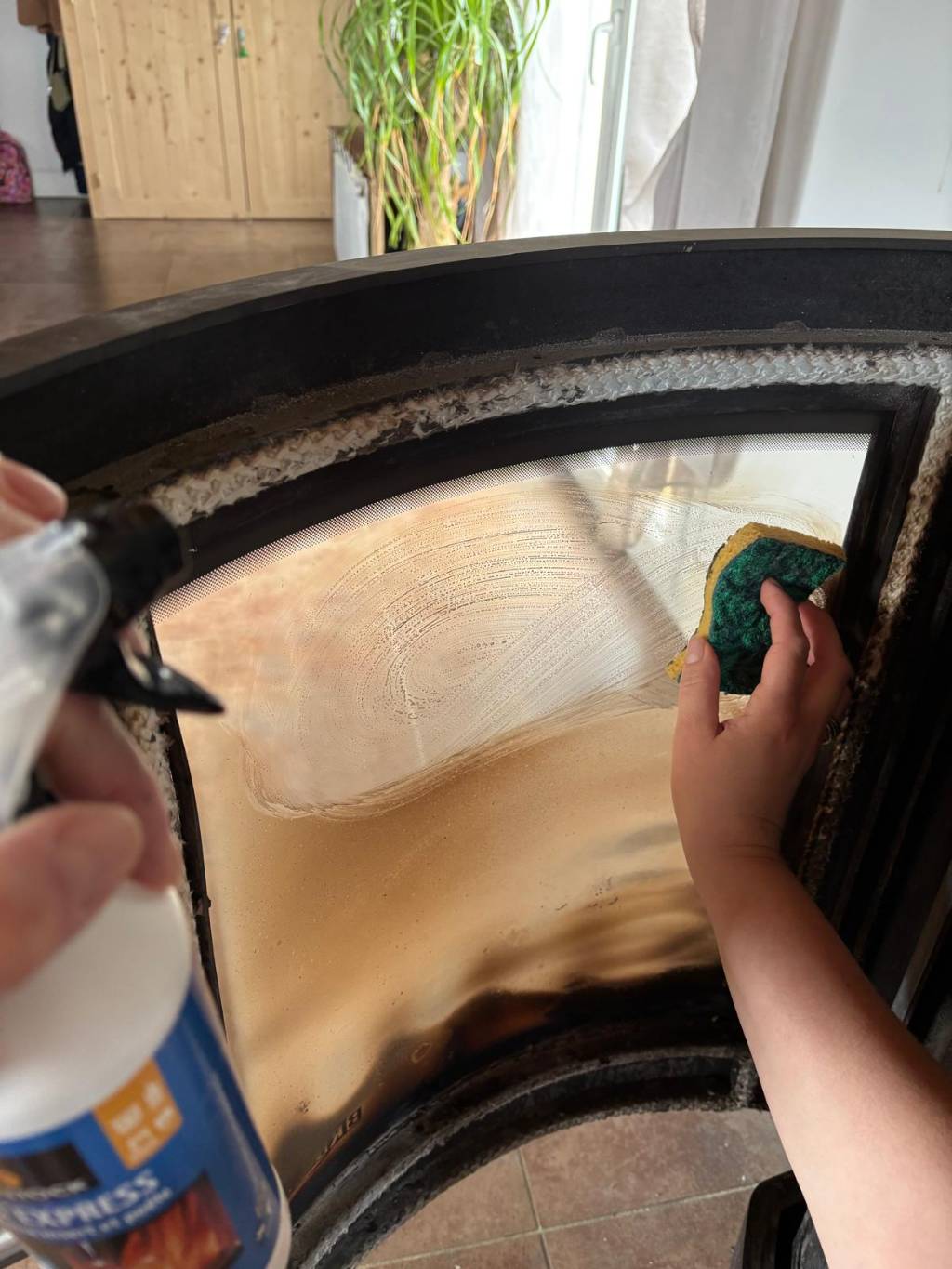 Même avec un appareil performant, la vitre d’un poêle à bois accumule naturellement des résidus issus de la combustion :