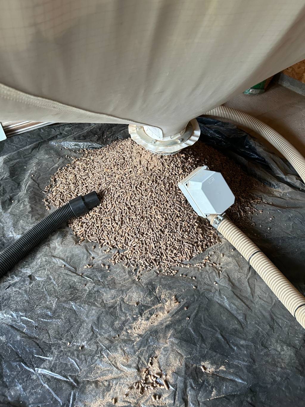Silo textile conique Okofen : 300kg de résidus de pellets retirés lors d'un nettoyage réalisé par Péchavy à Laplume (47)-Laplume(47310) - Lot et Garonne (47)