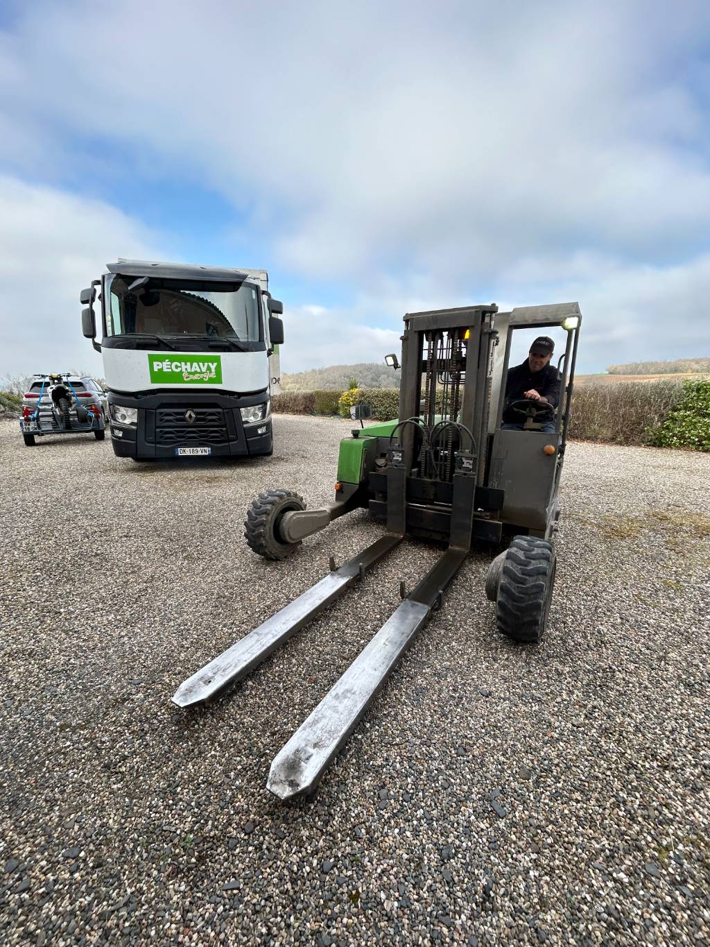 Livrer des palettes de granulés de bois ne se résume pas à déposer une charge en bas de votre allée. Chez Péchavy Energie Bois, nous avons investi dans un équipement professionnel pour garantir une livraison soignée, précise et sans contrainte pour vous.