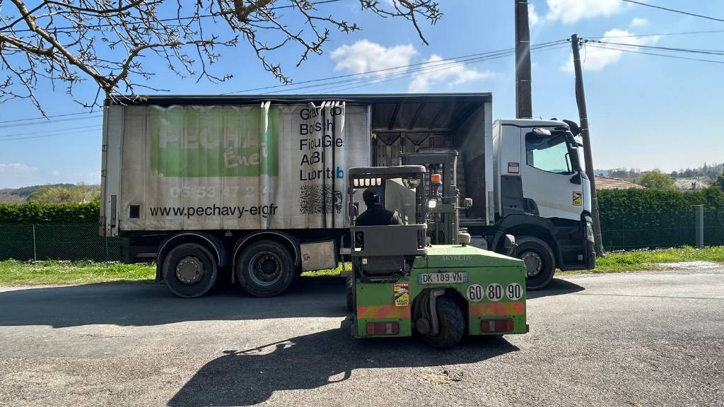 C'est précisément pour répondre à ce défi que Péchavy Energie Bois a investi dans un camion porteur équipé d'un chariot embarqué et d'un transpalette électrique. Ce matériel spécifique nous permet d'intervenir en toute autonomie.