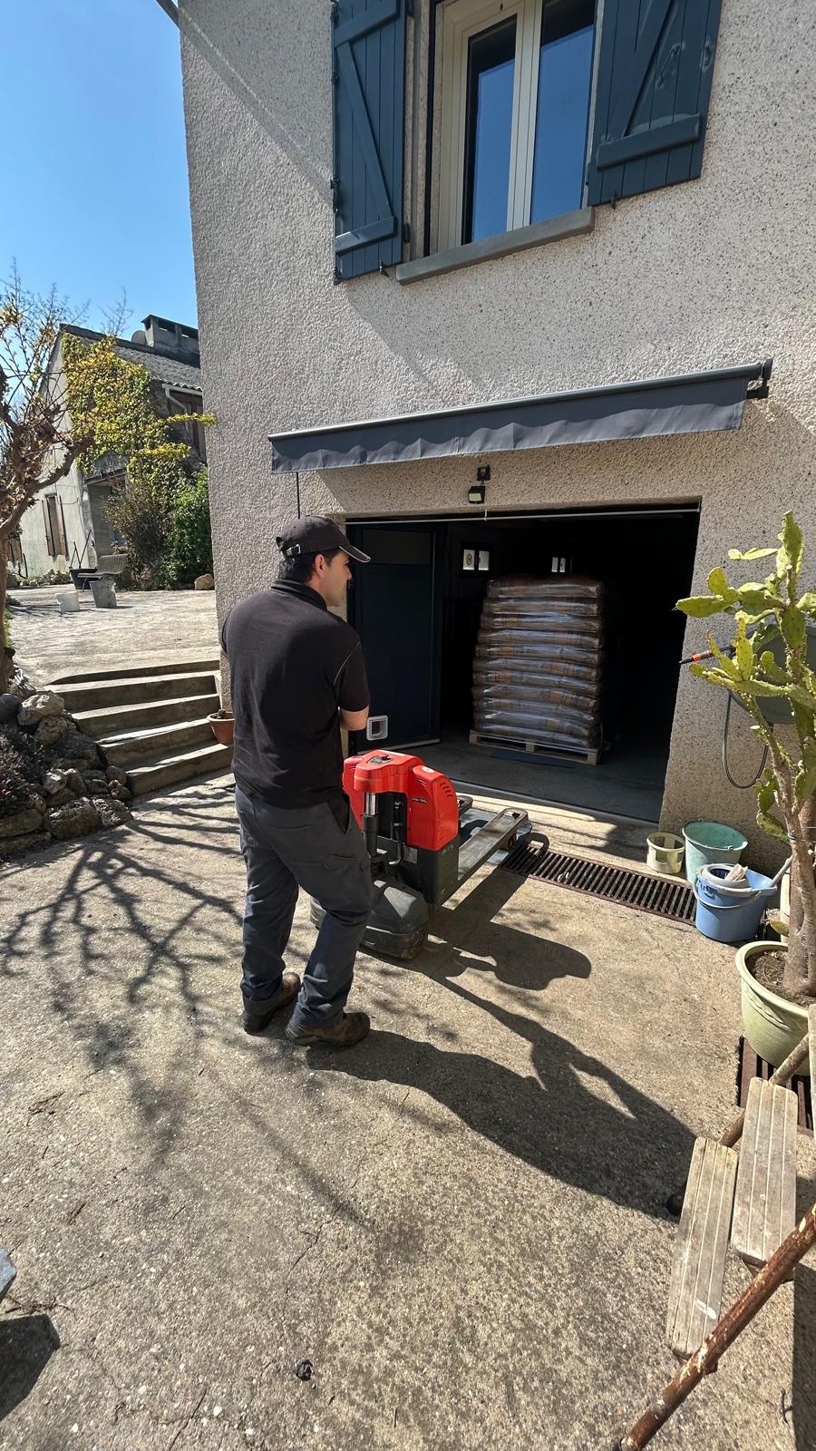 Une palette de granulés représente un poids conséquent. Sans matériel adapté, le client est contraint de porter lui-même chaque sac de 15 kg depuis le bord de la route jusqu'à son local, ce qui est physiquement éprouvant et chronophage. Avec notre équipement, vous n’avez plus aucune manipulation à faire. C’est ça le service Péchavy Energie Bois.
